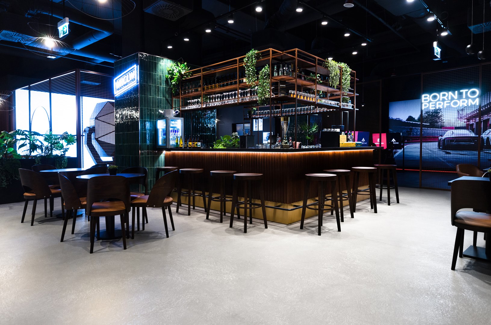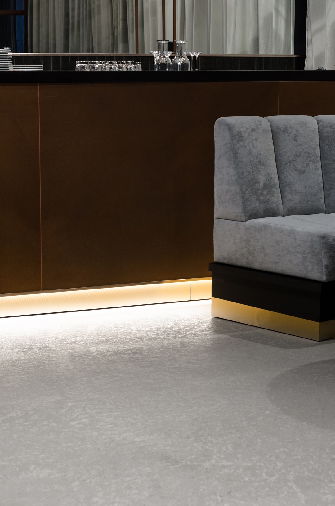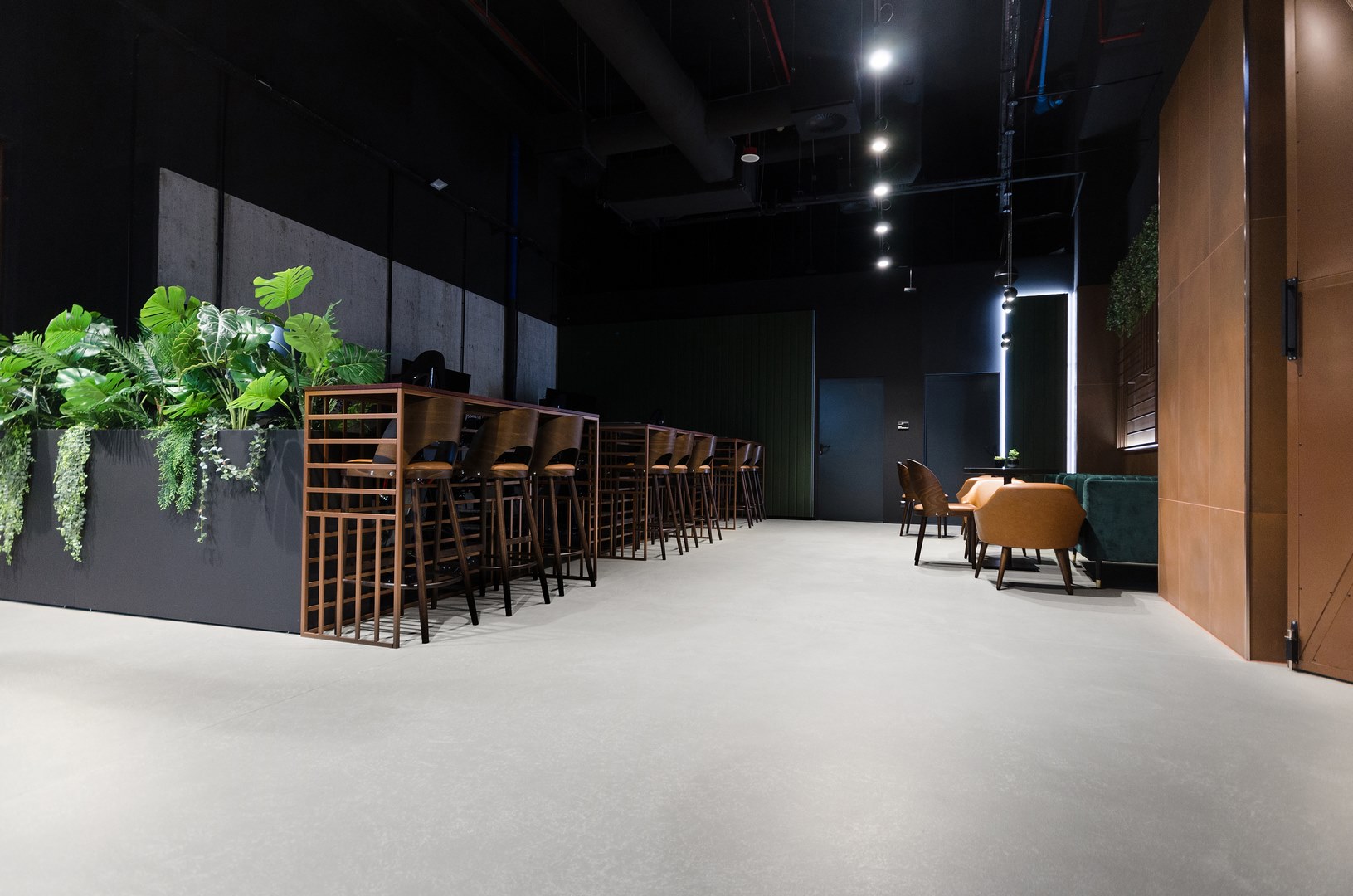Mikrocement na podłodze w przestrzeni restauracyjnej